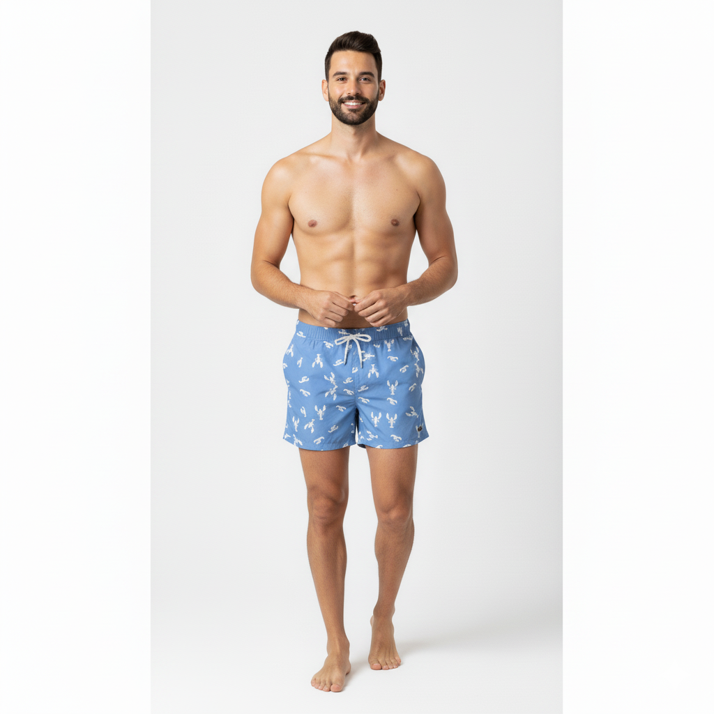 O Short Lagosta Azul representa o equilíbrio perfeito entre estilo e descontração. Inspirado nas águas profundas do Atlântico, sua estampa de lagostas brancas sobre o azul suave reflete a essência marítima da Marluah Brasil.