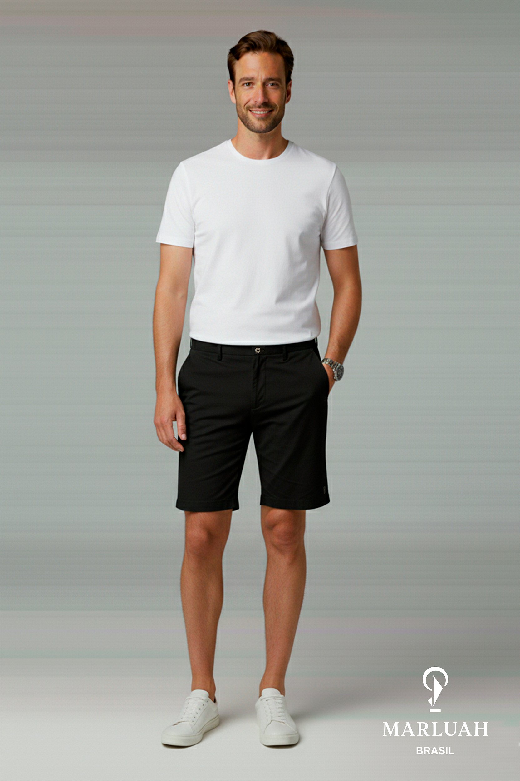 A Bermuda Marluah Algodão Preta une elegância, versatilidade e conforto em uma peça clássica e indispensável no guarda-roupa masculino. Confeccionada em algodão premium de alta gramatura, ela oferece toque macio, estrutura firme e respirabilidade ideal para o clima tropical.